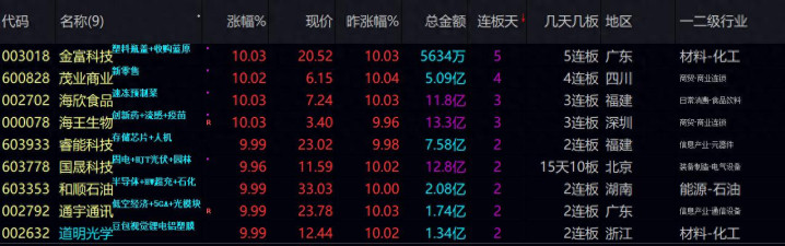 11 月 28 日,连板个股聚焦“消费、医药商业、科技与新能源细分”展开,金富科技、茂业商业、海欣食品等大消费标的,契合年终岁尾的消费传统炒作窗口。海王生物主打医药商业的防御属性。通宇通讯(商业航天)依赖朱雀三号发射的事件预期,国晟科技(固态电池 + 光伏)靠订单与产能释放支撑。